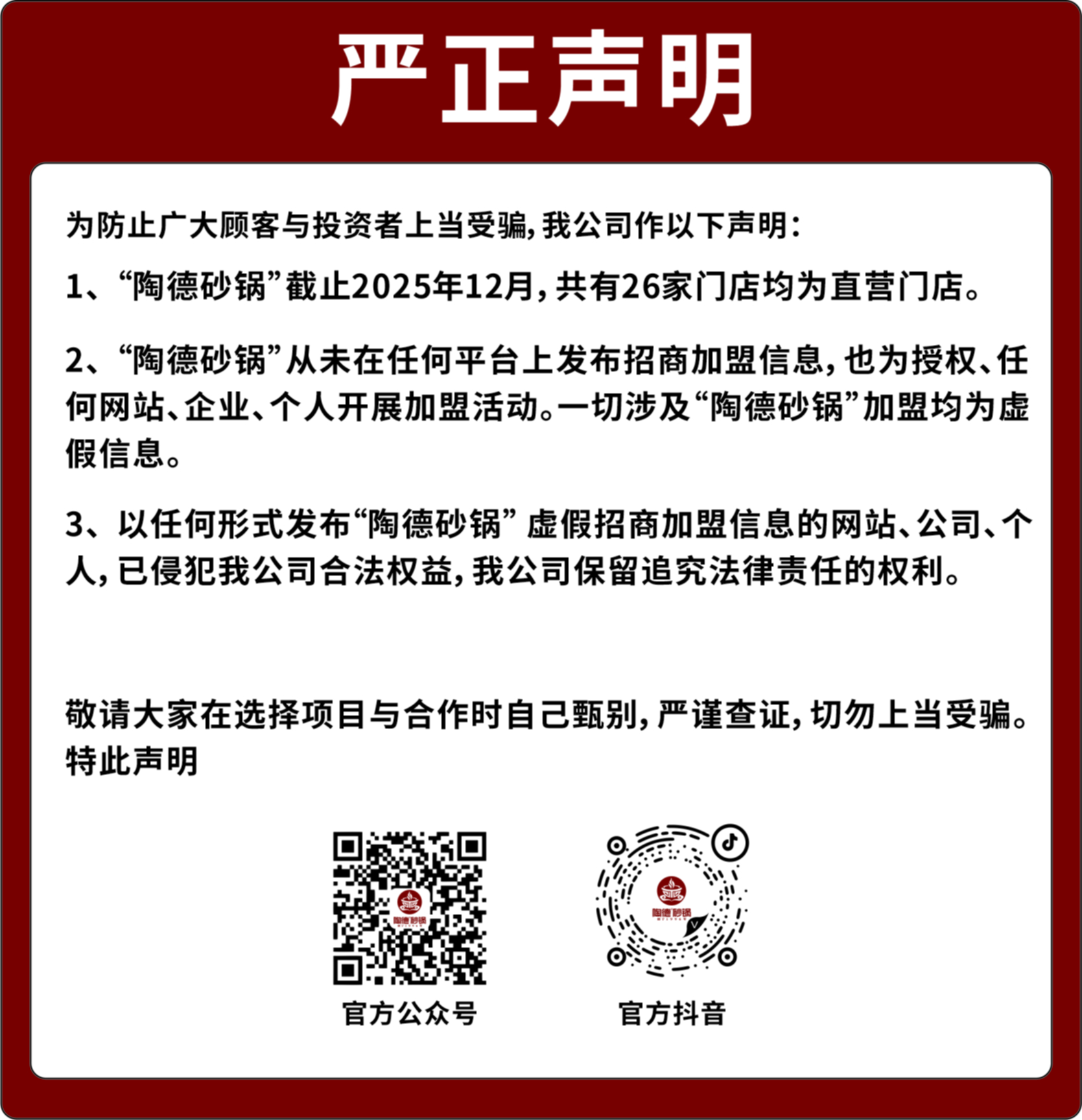 来到了成都,正式开创陶德砂锅,目前包含射洪市、遂宁市、成都市共19家自营门店。